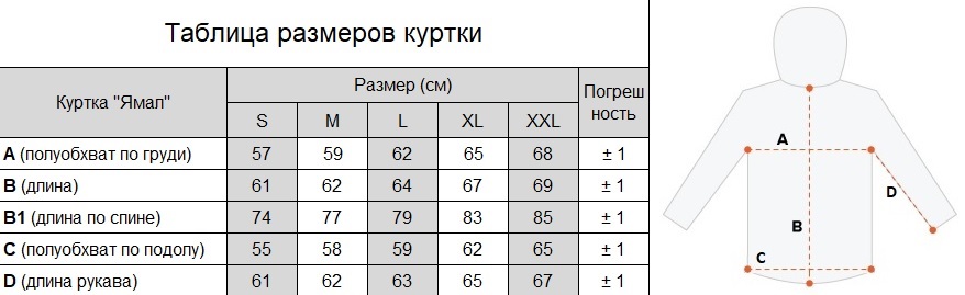 Вес куртки от 1,1 до 1,250 кг. в зависимости от размера.