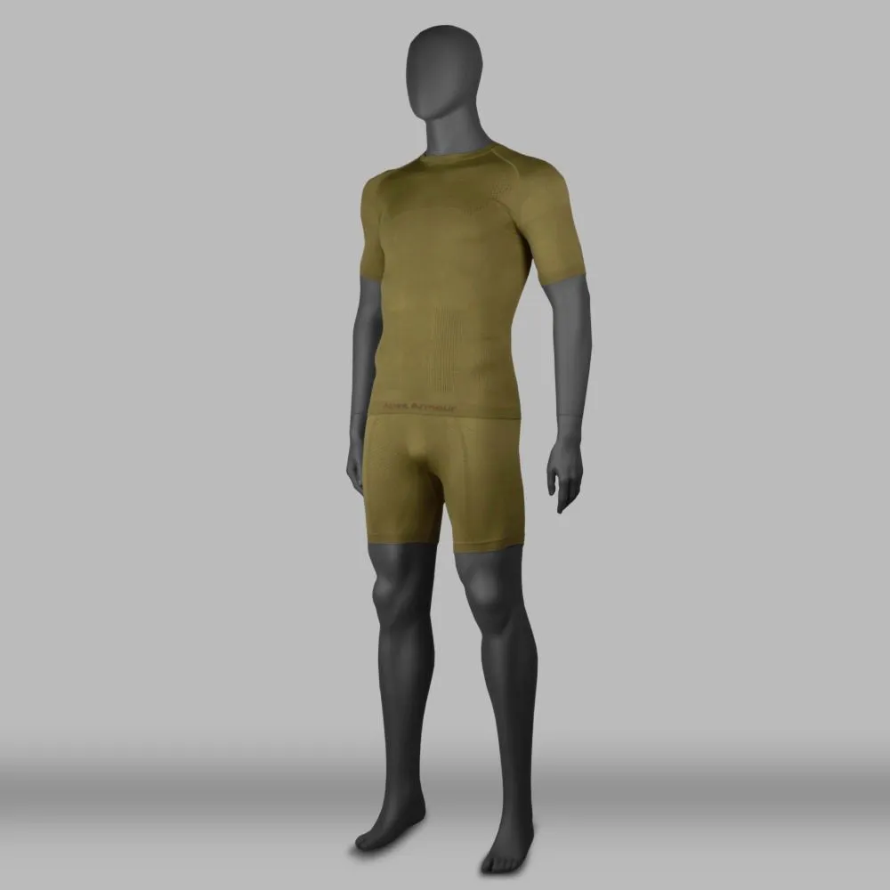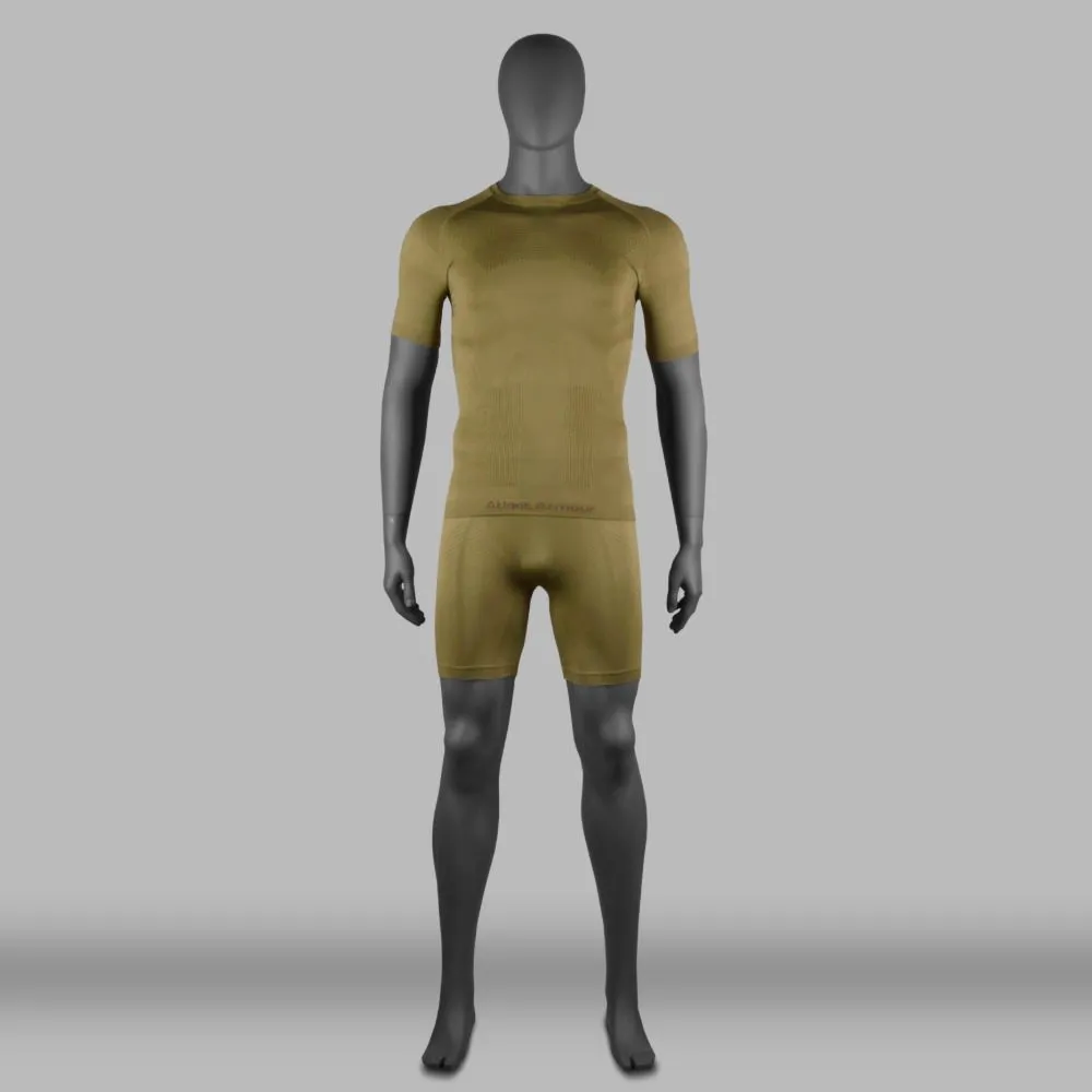 Термобелье "Тайга" — комплект из термофутболки и термошорт для активностей в теплую погоду. Основной материал — полиамид который отлично отводит влагу. Благодаря высокой износостойкости и сочетанию с эластаном, белье эластичное, комфортное и хорошо прилегает к телу без растяжений. Бесшовная трехмерная зональная вязка обеспечивает разную плотность для оптимального тепла и влагоотведения в разных зонах. Сочетание используемого материала и особенности вязки способствует уменьшению роста бактерий и замедляет появление запаха.