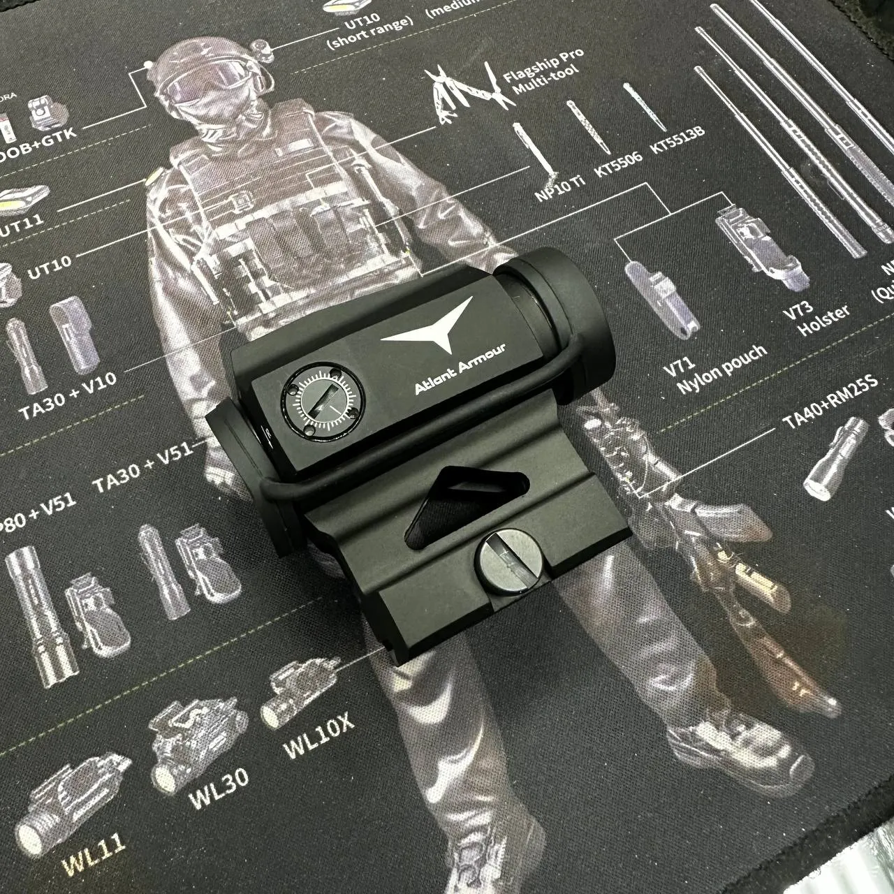 Небольшой компактный прицел с боковым батарейным отсеком и низкопрофильной турелью с регулировкой угла наклона и высоты, обеспечивающей максимальное поле зрения. Благодаря использованию нового светодиода красная точка может работать до 50тыс часов от одной батарейки CR2032. Чувствительная к движению красная точка автоматически включается при минимальном давлении и включает функцию автоматического отключения при длительном неподвижном состоянии.