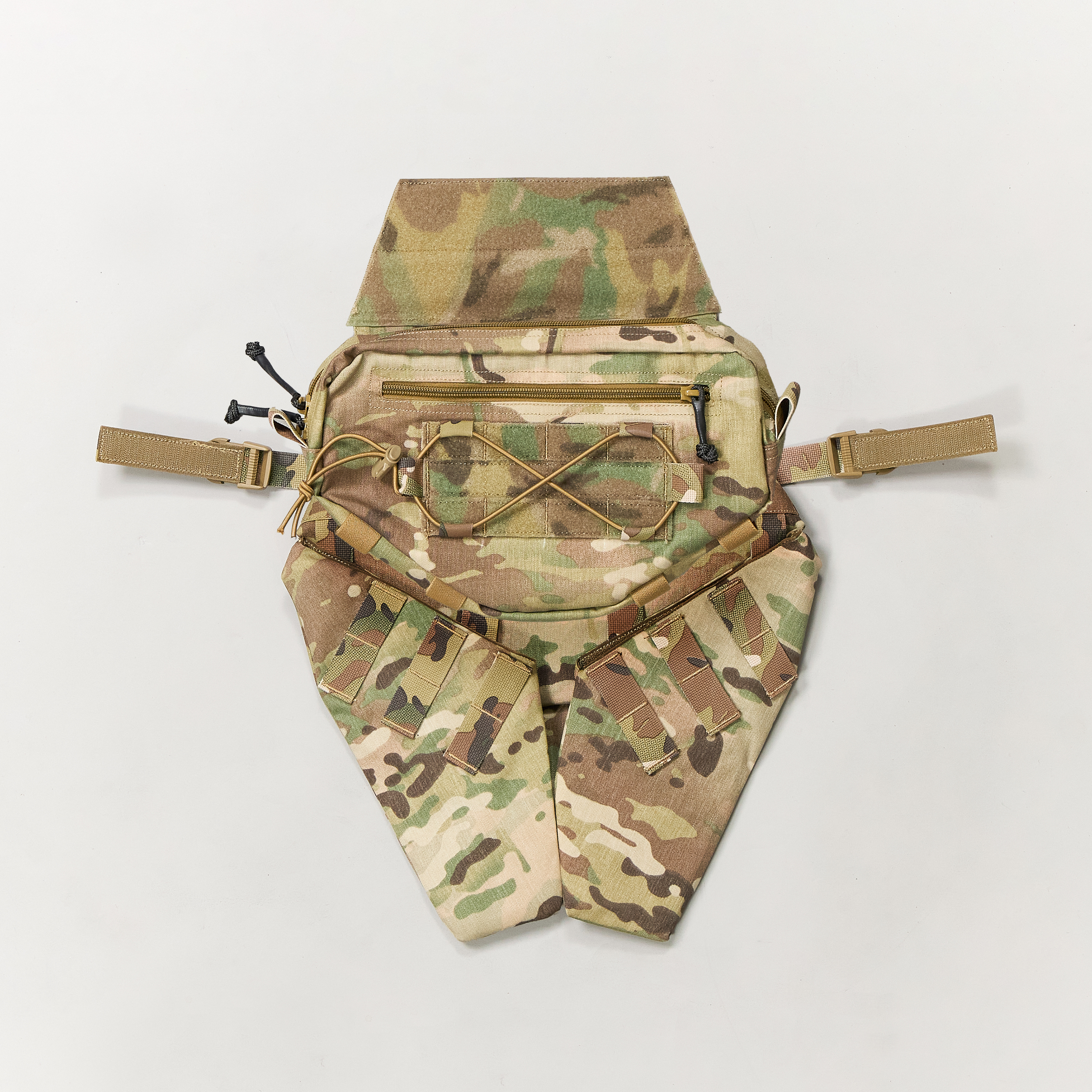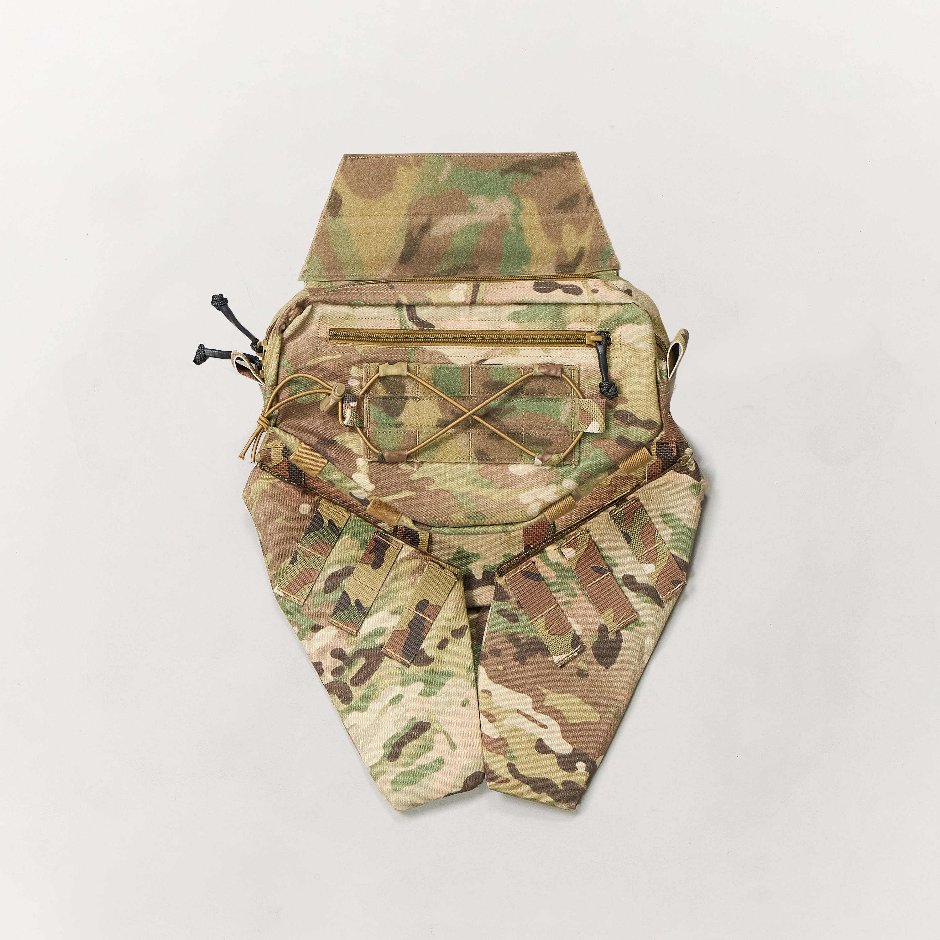 Комплет крепящихся друг к другу защиты паха лепесткового типа и абдоминального подсумка, с противоосколочными пакетами Бр2