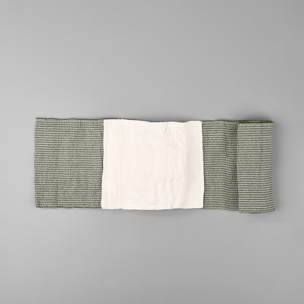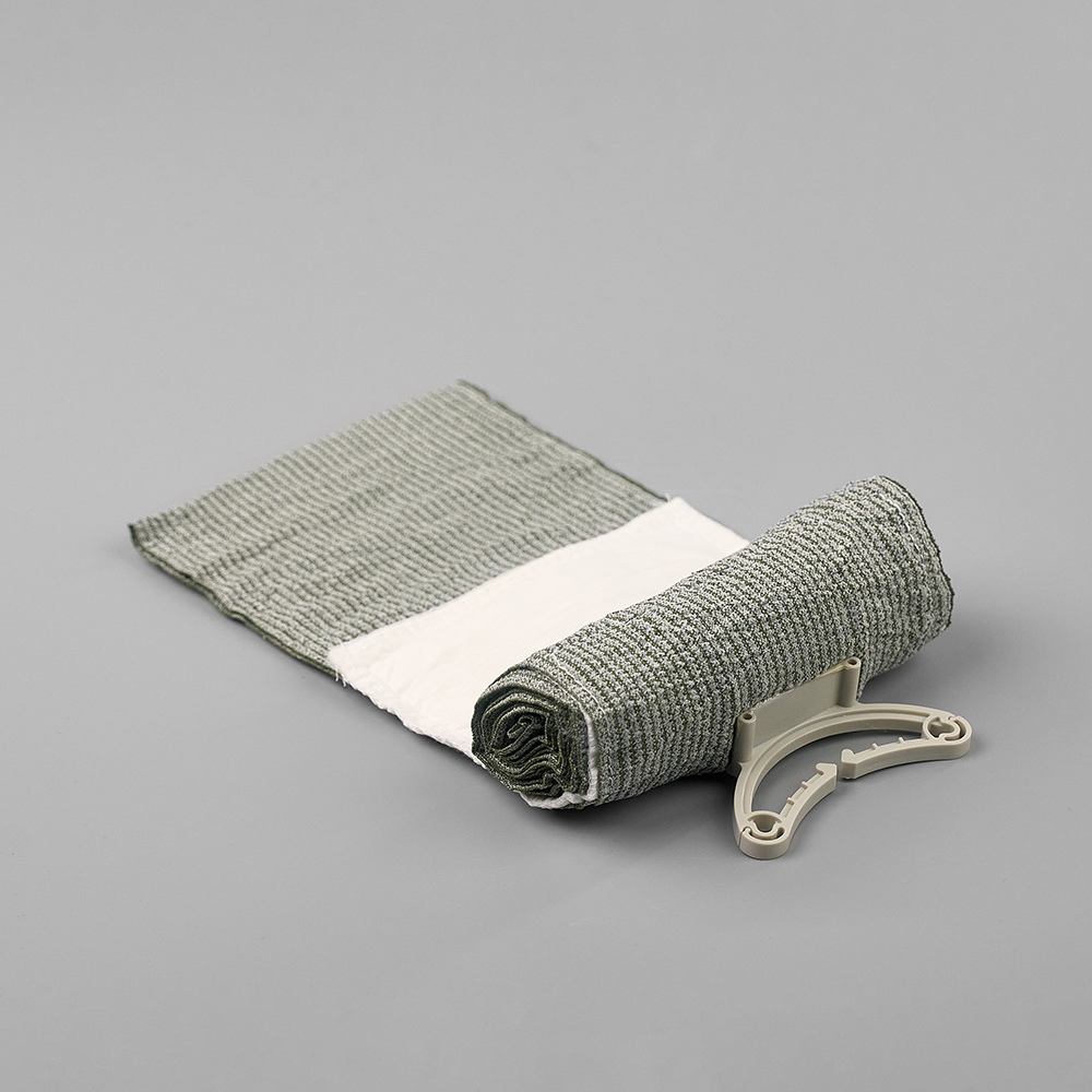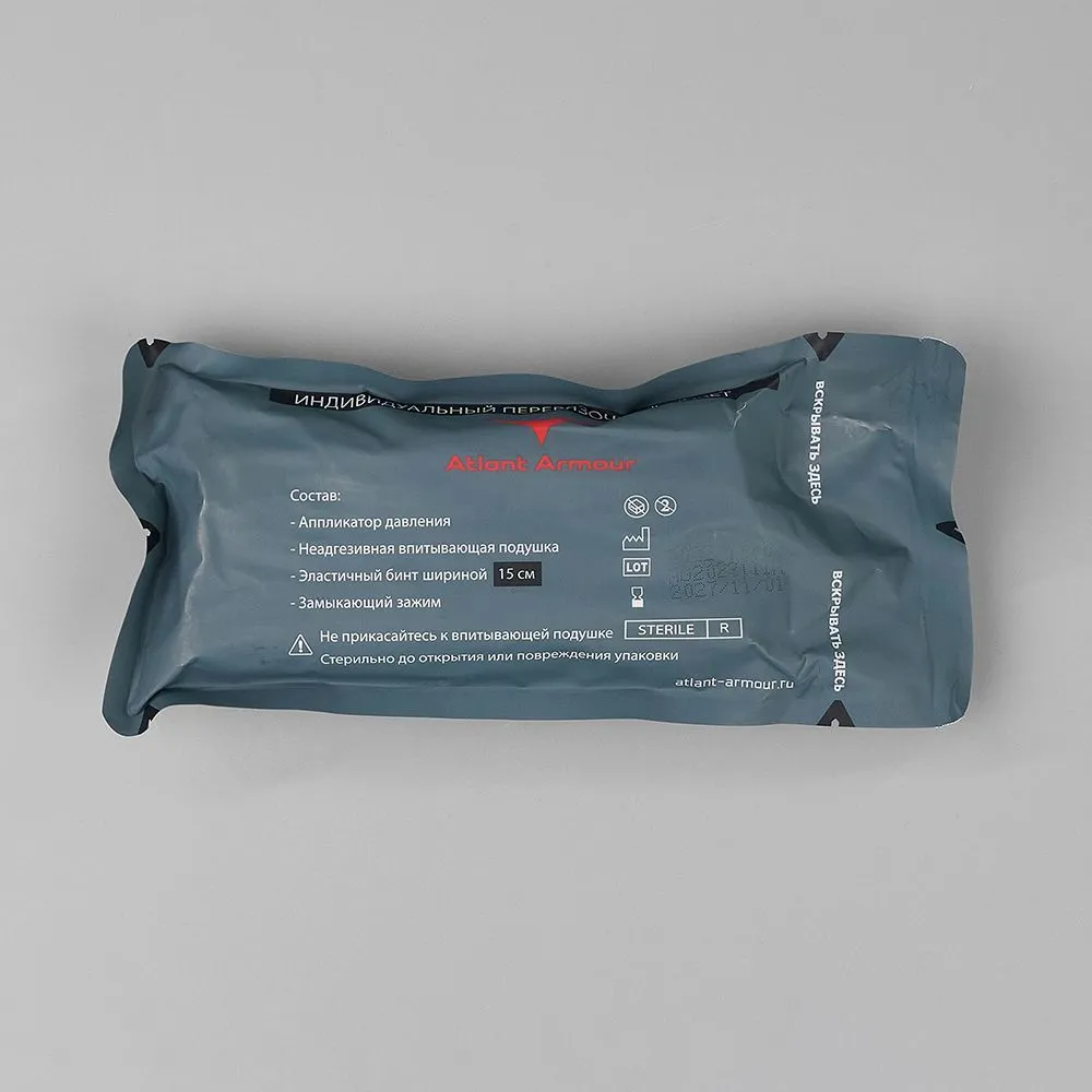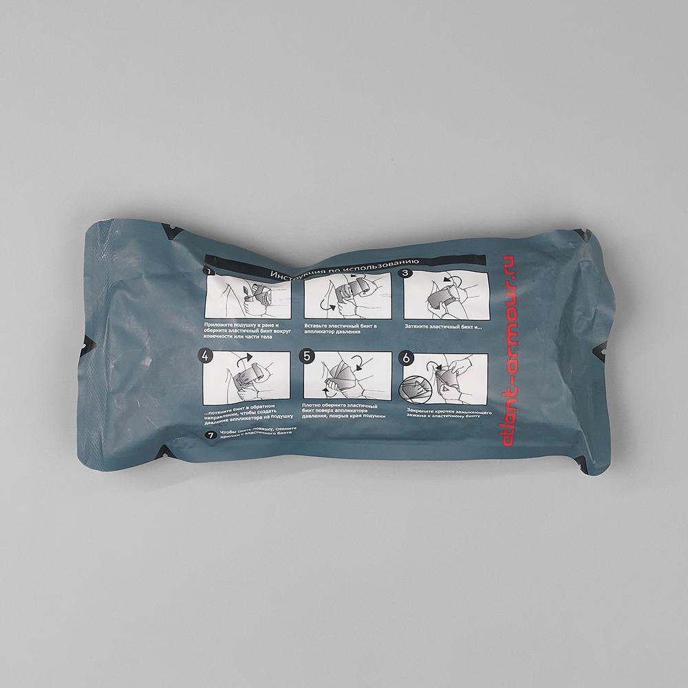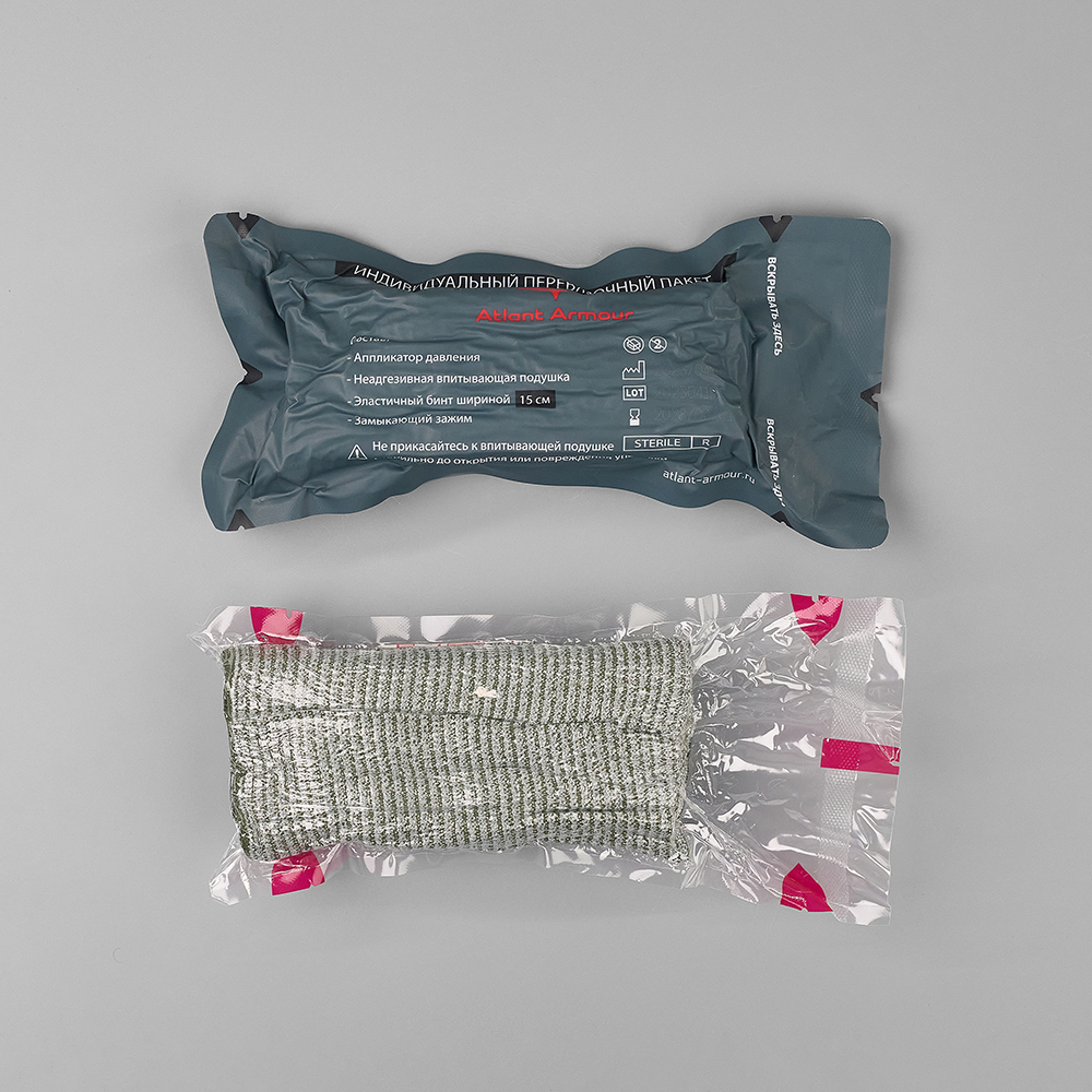 Трехслойная перевязочная прокладка шириной 15 см и длиной 180 см, растягивается до 4 метров. Сочетает свойства широкого эластичного бинта, давящей повязки и кровоостанавливающего жгута.