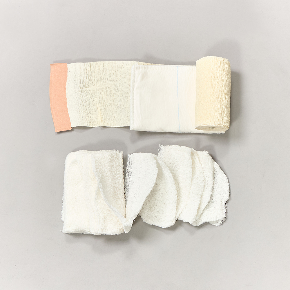 Эластичный самофиксирующийся бандаж с зажимом и бинтом для тампонирования, длина 175см. Размер упаковки 15х20см.
